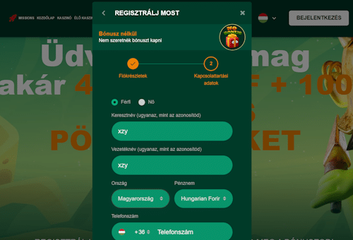 | Kaszinó bónusz | 100%-os befizetési bónusz akár 80 000 HUF-ig, 25 ingyen pörgetéssel |