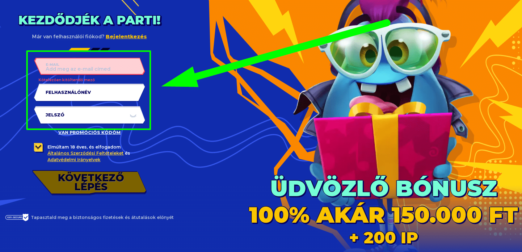 | Üdvözlő bónusz | 100 % akár 150.000 Ft + 200 Ingyenes Pörgetés |