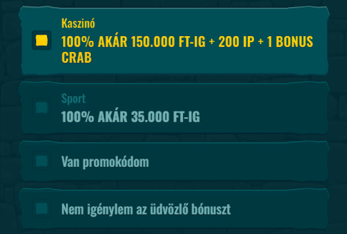 | Promóciós Kód | Ha van promóciós kódod, akkor a kód leírásában szereplő bónuszokat veheted igénybe. |